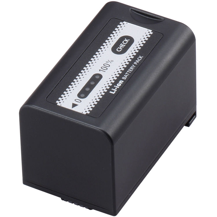 The Panasonic AG-VBR59 is a 7.28V, 43Wh lithium-ion battery for the Panasonic AG-DVX200 and AG-CX10 camcorders. It features a 5900mAh capacity and offers a 4-LED power gauge. For charging, this battery is compatible specifically with the Panasonic AG-BRD50P charger