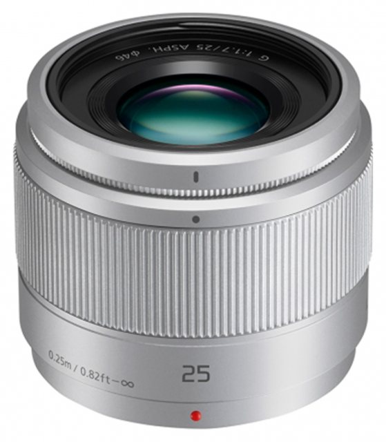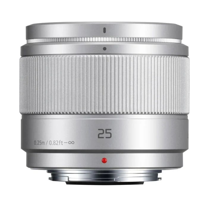 The Panasonic LUMIX G 25mm f/1.7 ASPH (H-H025) is a compact, lightweight (125g) prime lens for Micro Four Thirds cameras, offering a 50mm equivalent field of view. It features a fast f/1.7 aperture for low-light shooting and beautiful bokeh, 8-element design with aspherical/UHR elements for sharpness, and fast, silent 240fps AF.