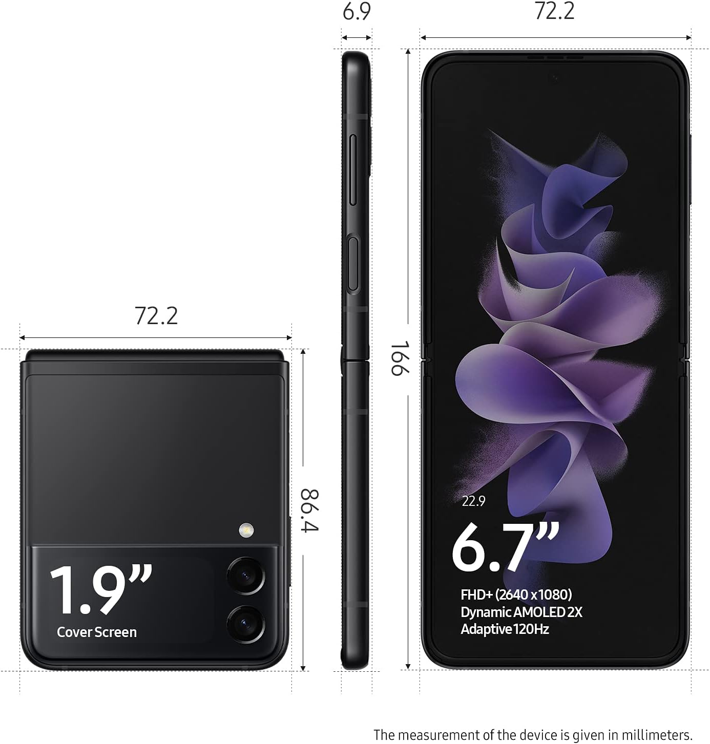 | Display Type | Foldable Dynamic AMOLED 2X, 120Hz, HDR10+, 1200 nits (peak) Cover display: Super AMOLED, 1.9 inches, 260 x 512 pixels |